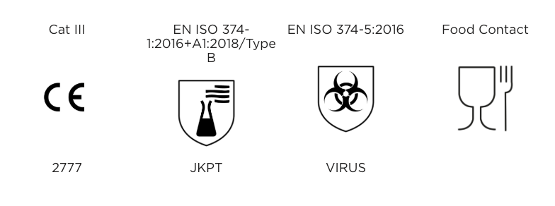 | Normalização | EN ISO 374-1:2016+A1:2018/Type B JKPT |